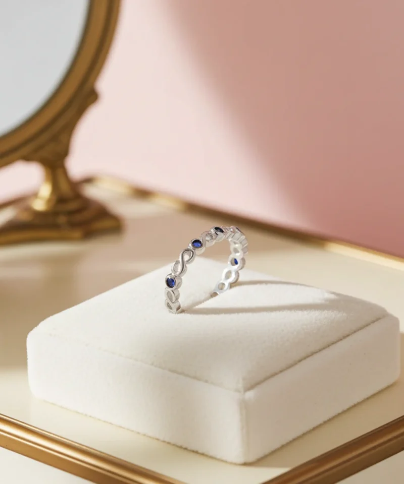 Srebrny pierścionek z niebieskimi cyrkoniami