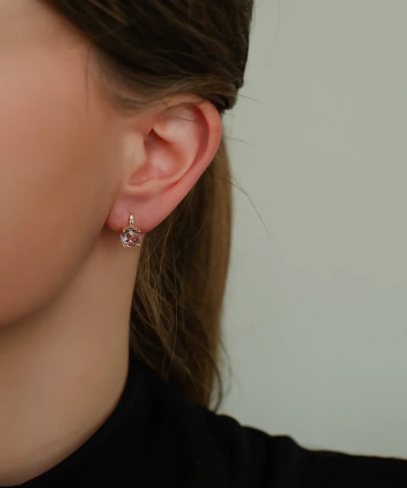 Złote kolczyki z fioletowym kamieniem