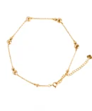 Ten projekt łączy klasykę z nowoczesnym podejściem do kobiecej ozdoby – błyszczące kulki pięknie odbijają światło, tworząc efekt subtelnego migotania przy każdym kroku. Regulowana długość bransoletki pozwala idealnie dopasować ją do kostki, 21,5- 25,5cm. Sprawdzi się zarówno solo, jak i w zestawieniu z innymi modelami – np. z bransoletkami z zawieszkami lub cienkimi łańcuszkami.