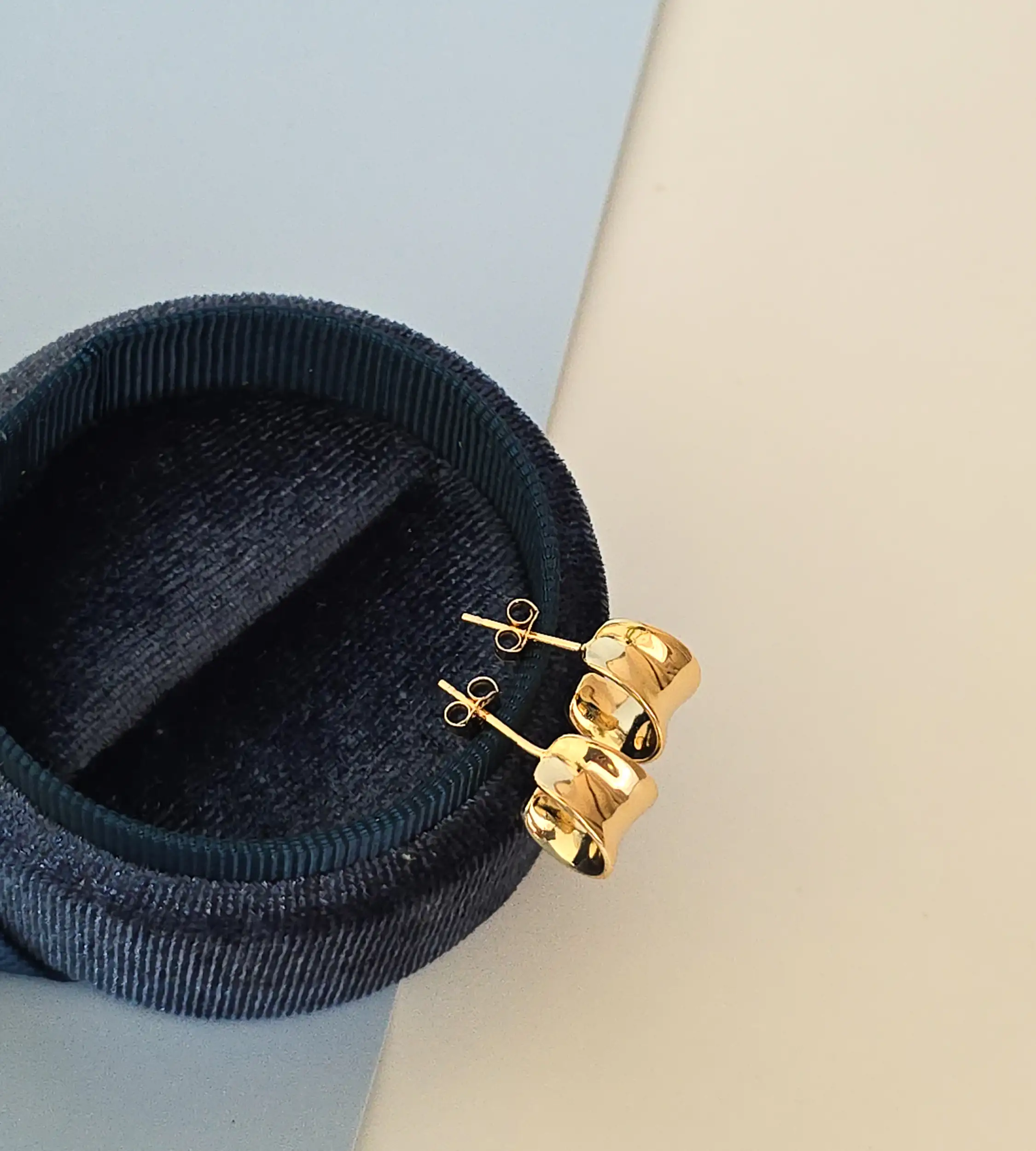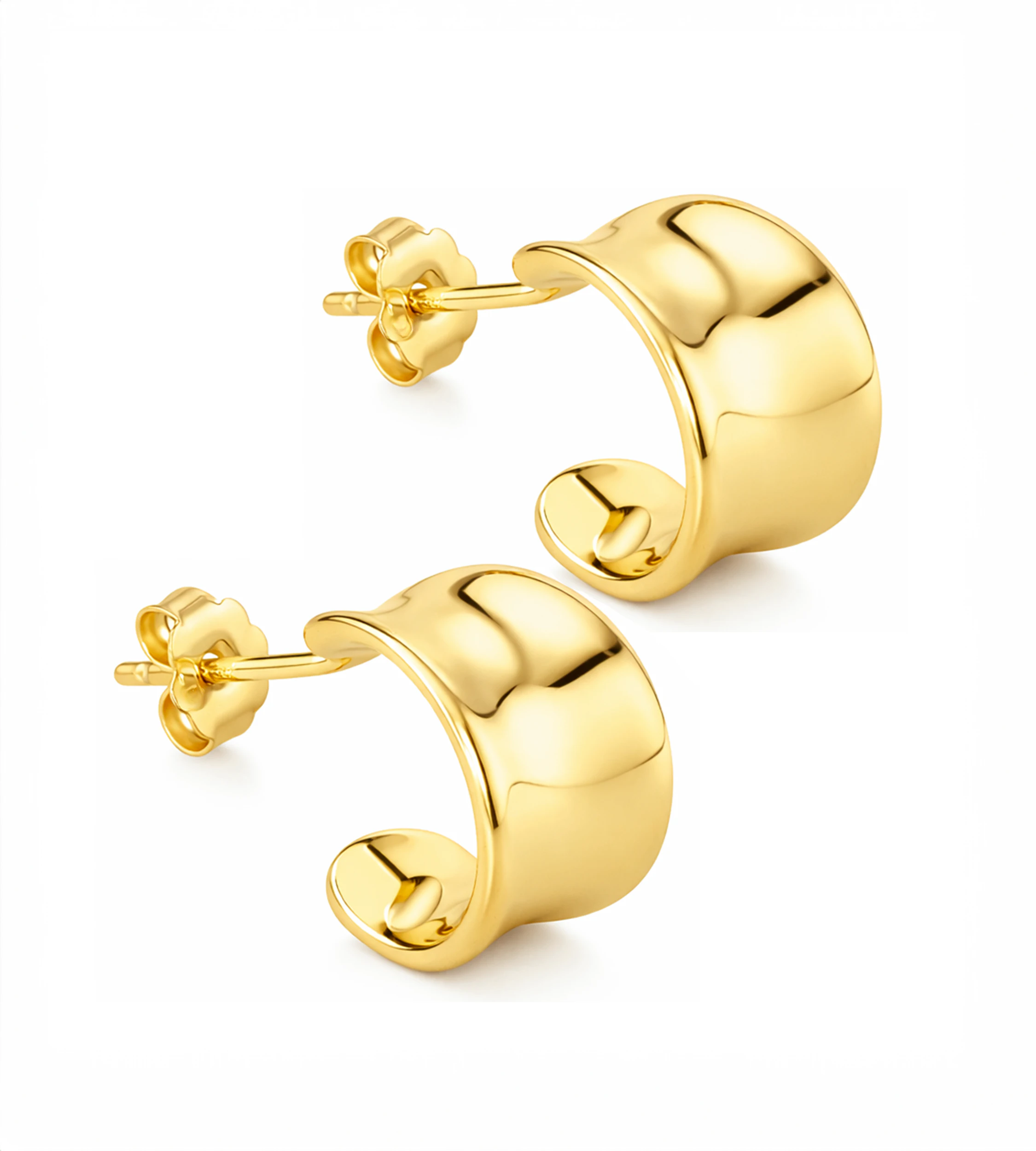 Złocone kolczyki – sztyfty o giętej formie to idealna propozycja dla kobiet, które cenią nowoczesny minimalizm i subtelny akcent w stylizacji. Ich miękka linia przypomina organiczny ruch – delikatną falę, która pięknie załamuje światło i dodaje lekkości. Mimo swojej prostoty, przyciągają wzrok i nadają charakter nawet najprostszej stylizacji.