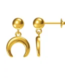 Złote kolczyki o opływowej, zaokrąglonej formie to nowoczesna interpretacja klasycznego kształtu z delikatnym, symbolicznym akcentem. Inspirowane formą rogu obfitości lub księżyca, niosą w sobie nie tylko estetykę, ale i znaczenie – obfitość, spełnienie, kobiecą siłę i intuicję. Wykonane ze srebra próby 925 i pokryte szlachetną warstwą 14-karatowego złota, idealnie łączą formę z przekazem.