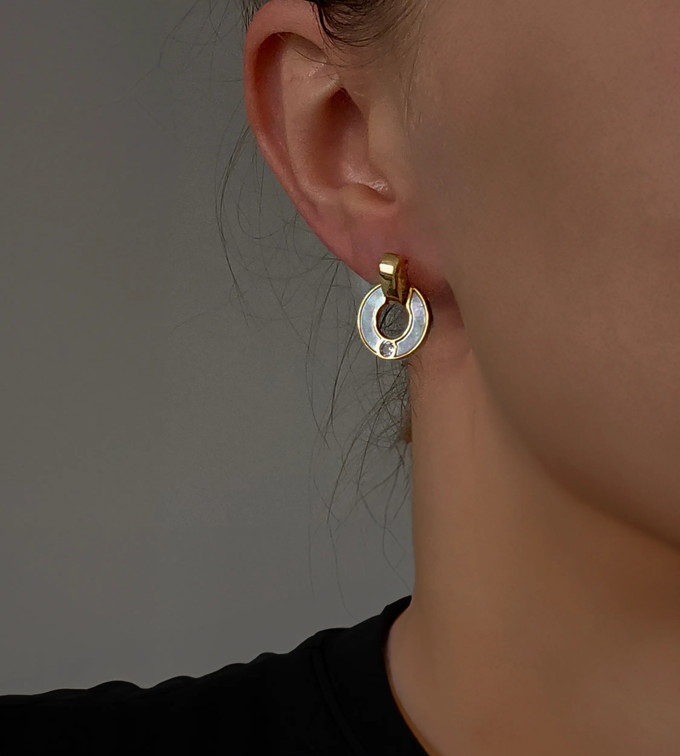 Kolczyki z pozłacanego srebra 925 z masą perłową i cyrkonią. Delikatne, eleganckie, idealne na prezent lub wyjątkowe okazje.