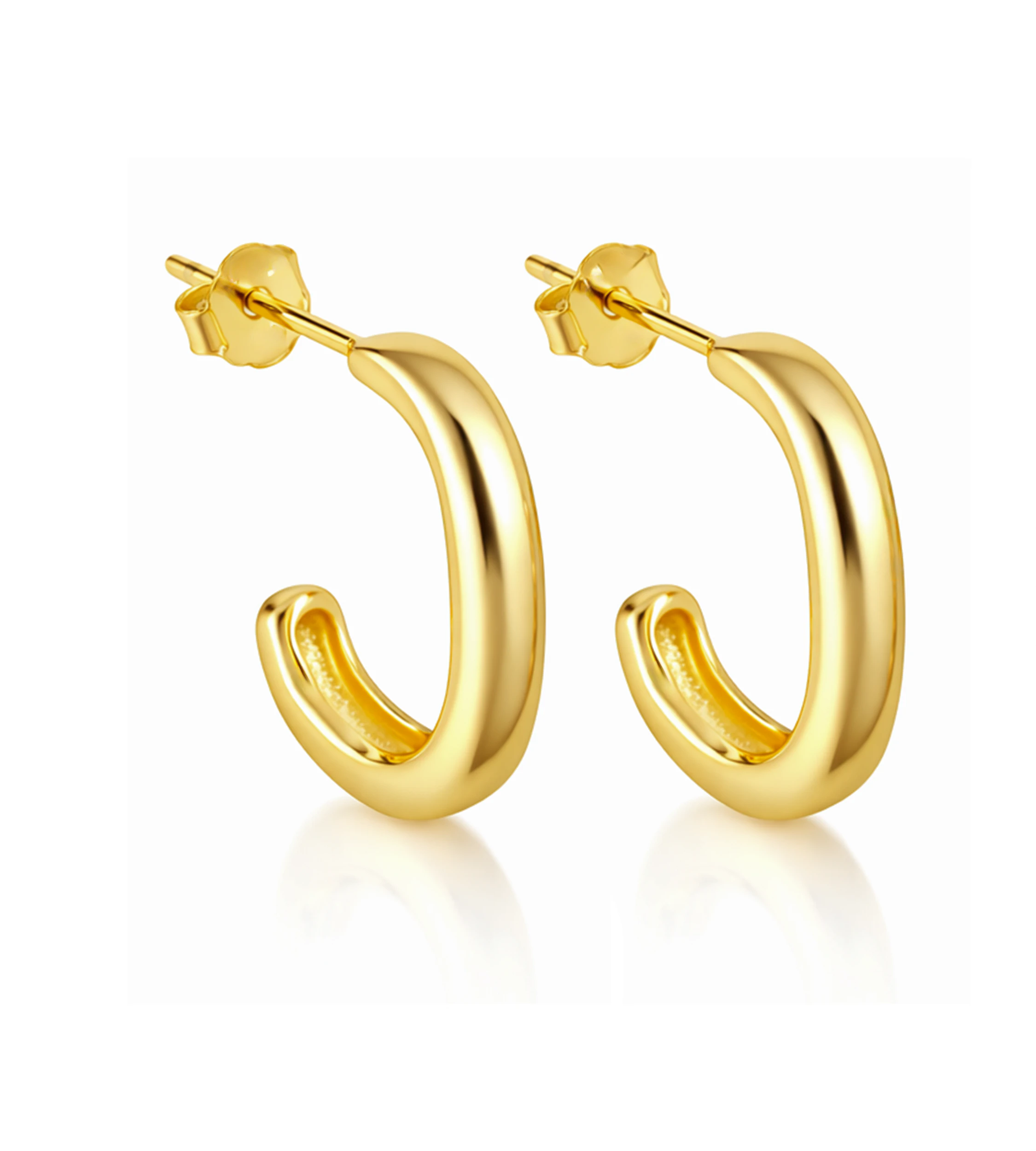 Pozłacane kolczyki półkola ze srebra 925. Gładka forma, nowoczesna prostota i 14-karatowe złoto w minimalistycznym wydaniu. Idealna biżuteria codzienna.