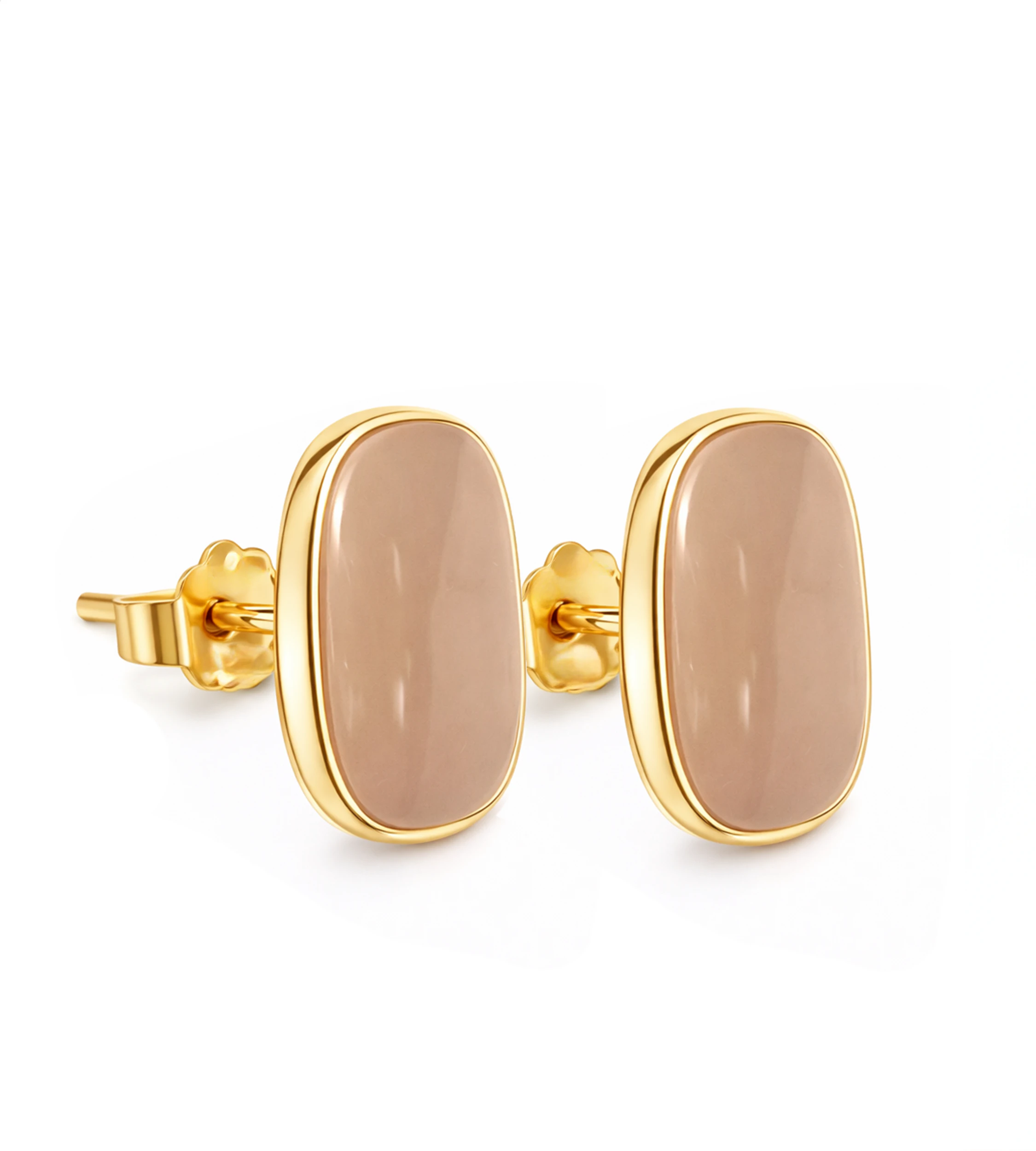 Pozłacane kolczyki w kształcie prostokąta to ukłon w stronę nowoczesnego minimalizmu z nutą delikatnego ciepła. Geometryczna forma w rozmiarze 12×9,5 mm została wypełniona emalią w odcieniu latte – subtelnym, beżowym kolorze, który kojarzy się z elegancją i spokojem. Złota ramka pozostawiona wokół emalii dodaje lekkości i ekskluzywnego wykończenia, tworząc kontrast pomiędzy matową powierzchnią a błyszczącym obrzeżem.