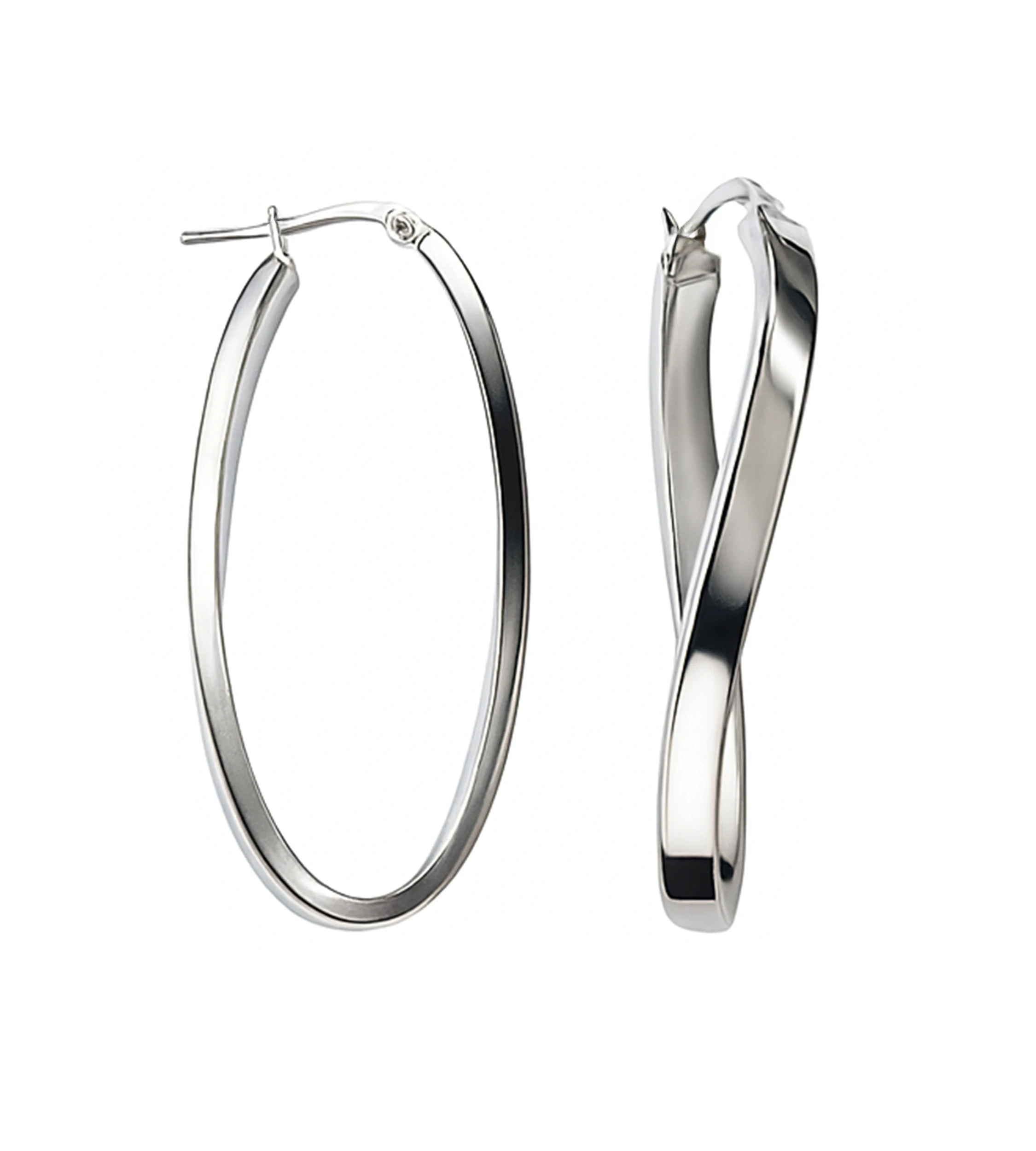 Srebrne kolczyki próby 925 z eleganckim zapięciem typu szarnir to propozycja dla kobiet, które kochają biżuterię prostą, nowoczesną i subtelnie przyciągającą uwagę. Nieregularny owal, uformowany przez delikatne zagięcia na wielu płaszczyznach, tworzy wyjątkowy, minimalistyczny kształt — lekki, przestrzenny i bardzo współczesny. Rodowana powierzchnia dodaje im chłodnego blasku i podkreśla ich geometryczną formę, a długość 4,6 cm nadaje im wyrazistości bez przesady.