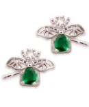 Kolczyki wykonane z wysokiej jakości rodowanego srebra próby 925 z wygodnym zapięciem typu sztyft. Mają formę uroczych, małych pszczółek, ozdobionych zielonymi cyrkoniami, które subtelnie mienią się w świetle i nadają biżuterii świeżego, radosnego charakteru. Precyzyjne wykonanie oraz delikatna forma sprawiają, że kolczyki są lekkie i bardzo komfortowe w noszeniu nawet przez cały dzień.