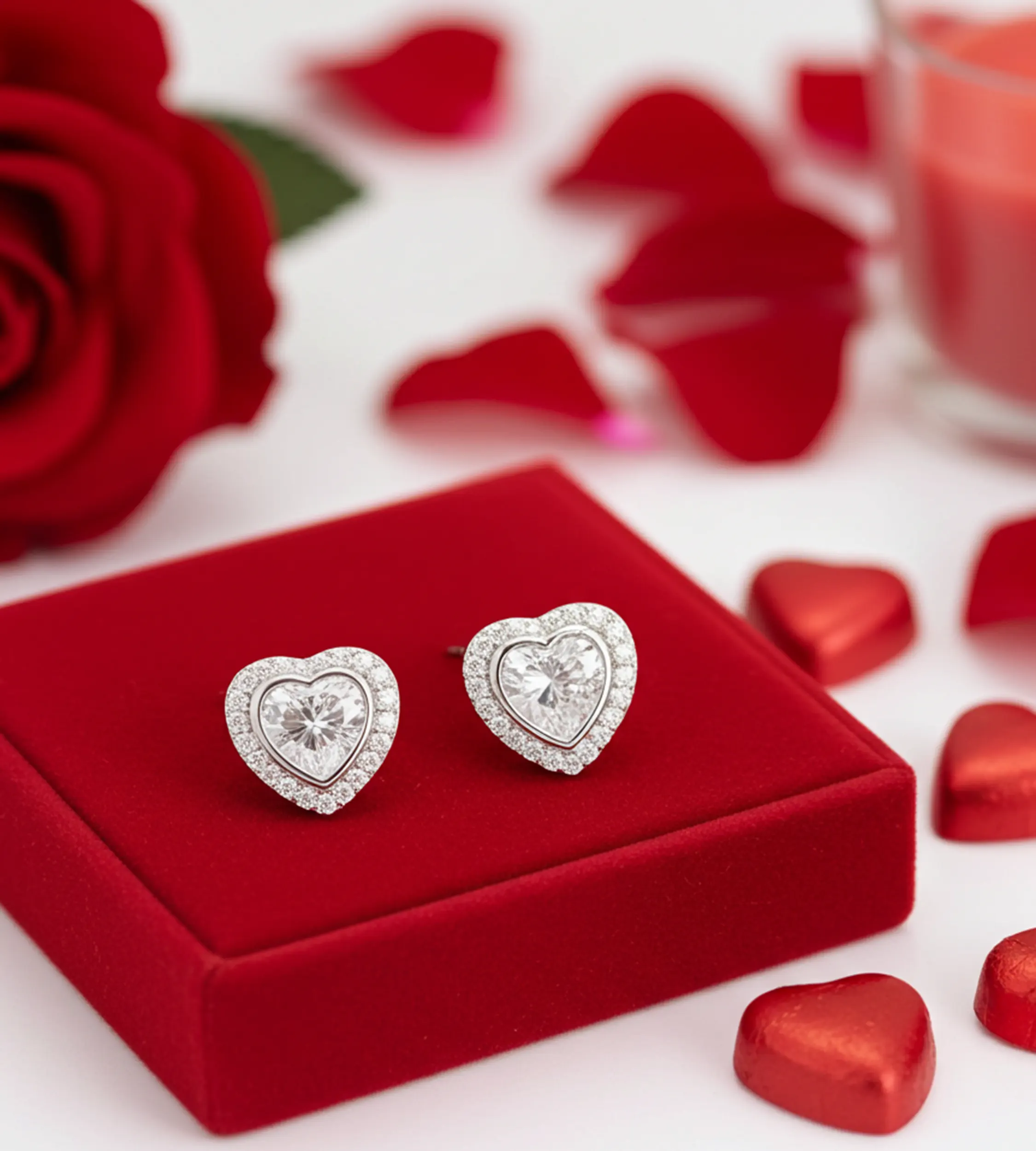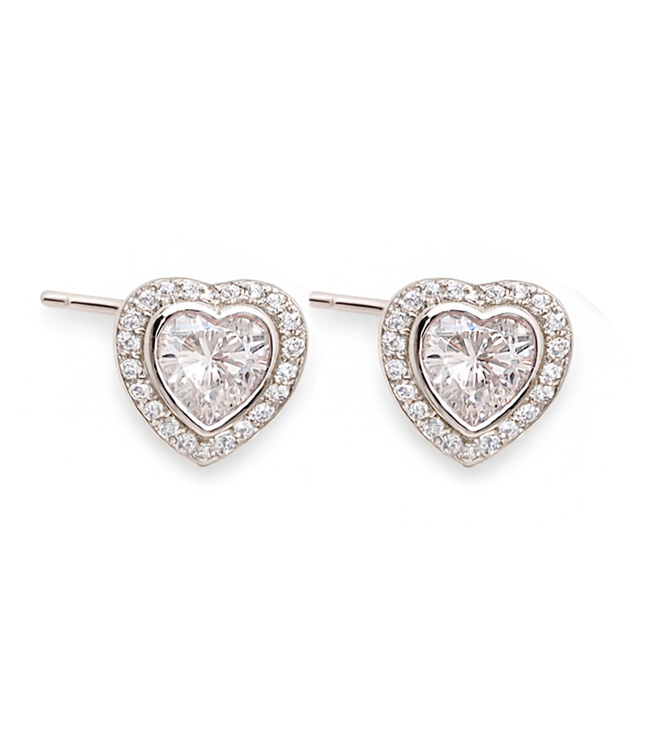 Srebrne kolczyki próby 925 z zapięciem typu sztyft to subtelna propozycja dla kobiet, które cenią ponadczasową biżuterię z motywem serca. W centrum każdego kolczyka znajduje się biała cyrkonia, której blask dodatkowo podkreśla drobny wianuszek mniejszych, starannie oszlifowanych kamieni. Delikatna oprawa tworzy elegancki połysk, a całość została pokryta warstwą rodu, dzięki czemu biżuteria zyskuje chłodny, szlachetny odcień oraz większą odporność na zarysowania i matowienie.