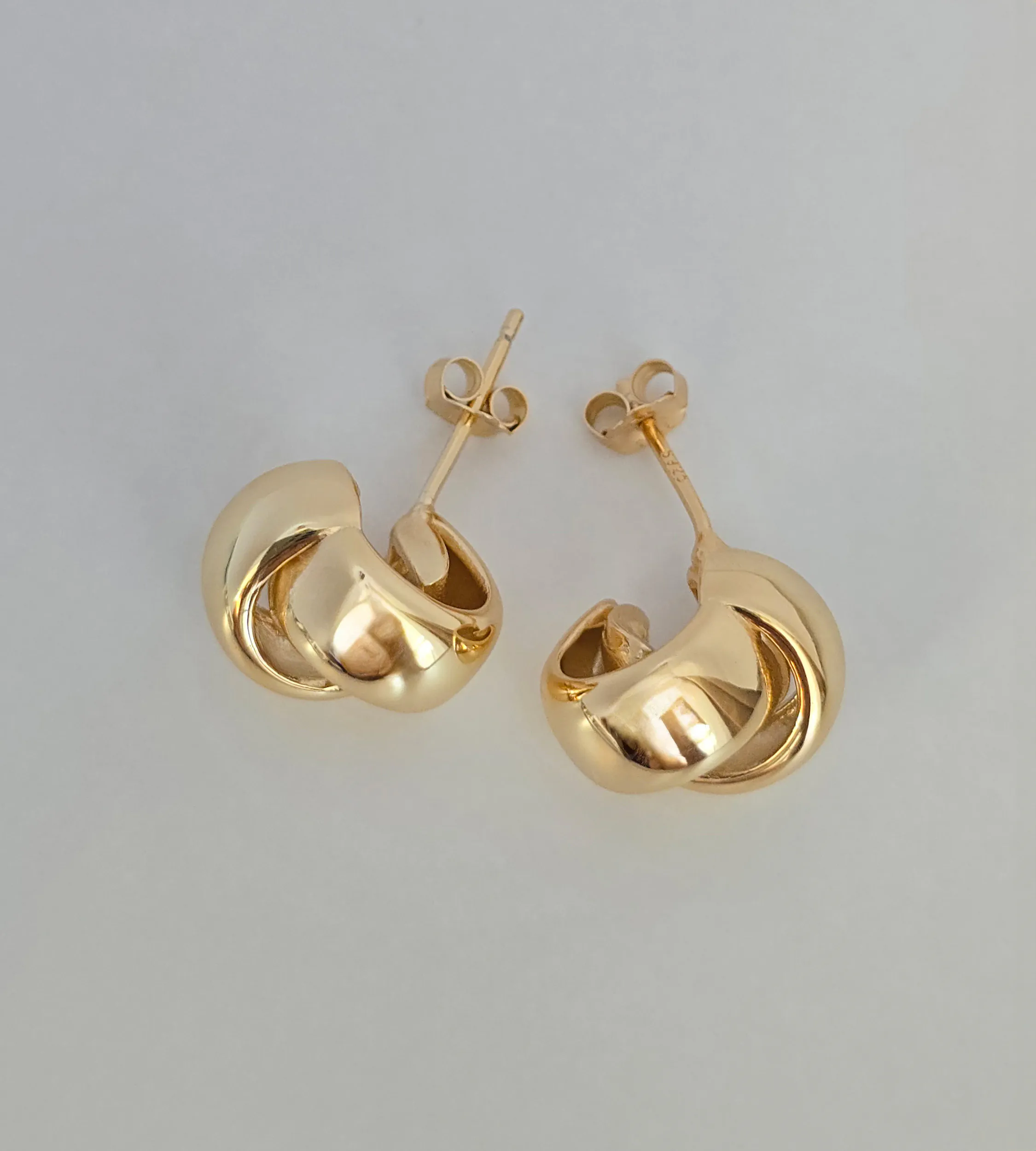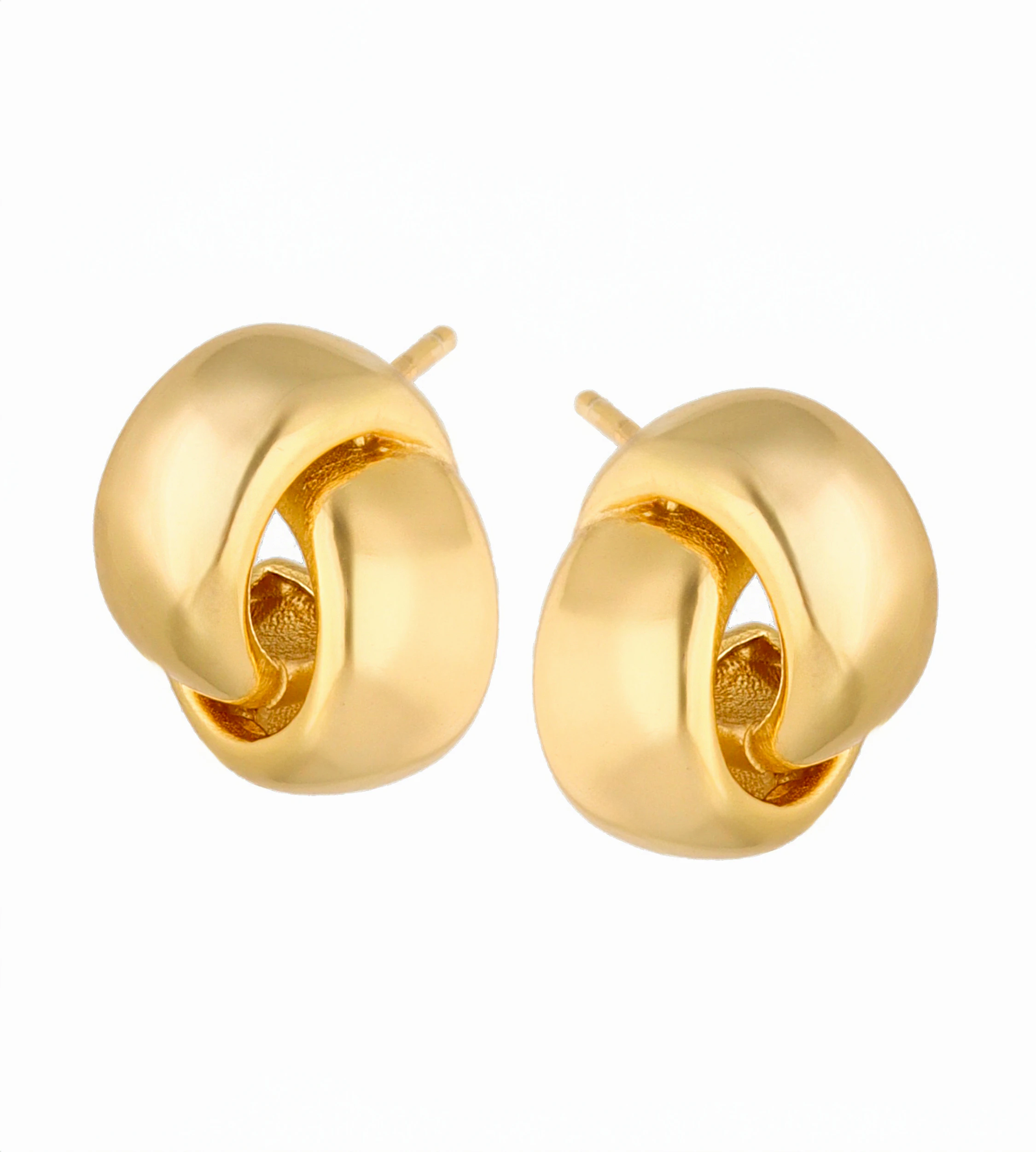 Pozłacane kolczyki-sztyfty w formie zmysłowego supełka. Minimalistyczny design, elegancja i wygoda w jednym. Idealne na co dzień i na wieczór.