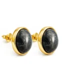 Nowoczesna forma, naturalny kamień i złote wykończenie – te kolczyki sztyft to propozycja dla kobiet ceniących prostotę z charakterem. Wykonane zostały ze srebra próby 925, pokrytego warstwą 14-karatowego złota. Ich centralnym punktem jest owalny czarny kamień black flash, o wymiarach 12 mm × 10,5 mm, oprawiony w gładką ramkę z wysokim połyskiem.