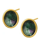 Epidot, o głębokiej, zielonej barwie i subtelnej grze światła, sprawia, że kolczyki zyskują intrygujący, nieco tajemniczy charakter. Nieprzezroczysta powierzchnia kamienia nadaje biżuterii nowoczesny, industrialny styl, który świetnie łączy się z minimalistycznymi stylizacjami – od codziennych zestawów z marynarką po wieczorowe sukienki.