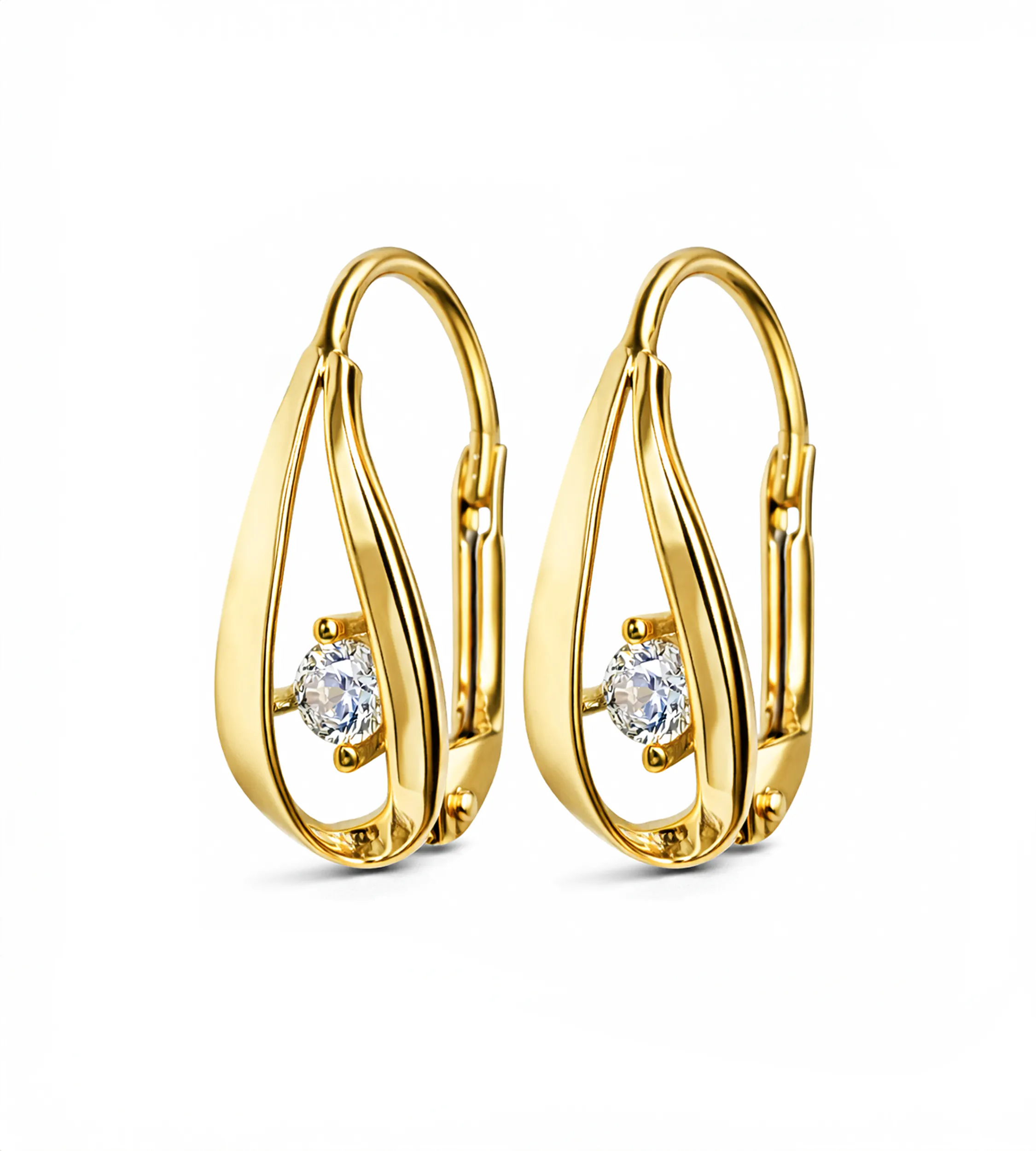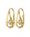Stylowe złote kolczyki w kształcie łezki z angielskim zapięciem. Centralna cyrkonia nadaje im elegancki charakter. Idealne na każdą okazję!