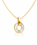 Ten elegancki naszyjnik to idealne połączenie subtelnej klasyki z nowoczesną formą. Wykonany z wysokiej jakości srebra próby 925, pokrytego warstwą 14-karatowego złota, wyróżnia się wyjątkową zawieszką – delikatnym kółkiem wypełnionym masą perłową i ozdobionym błyszczącą cyrkonią. Całość tworzy zrównoważoną kompozycję blasku i światła, która przyciąga wzrok, ale pozostaje subtelna.