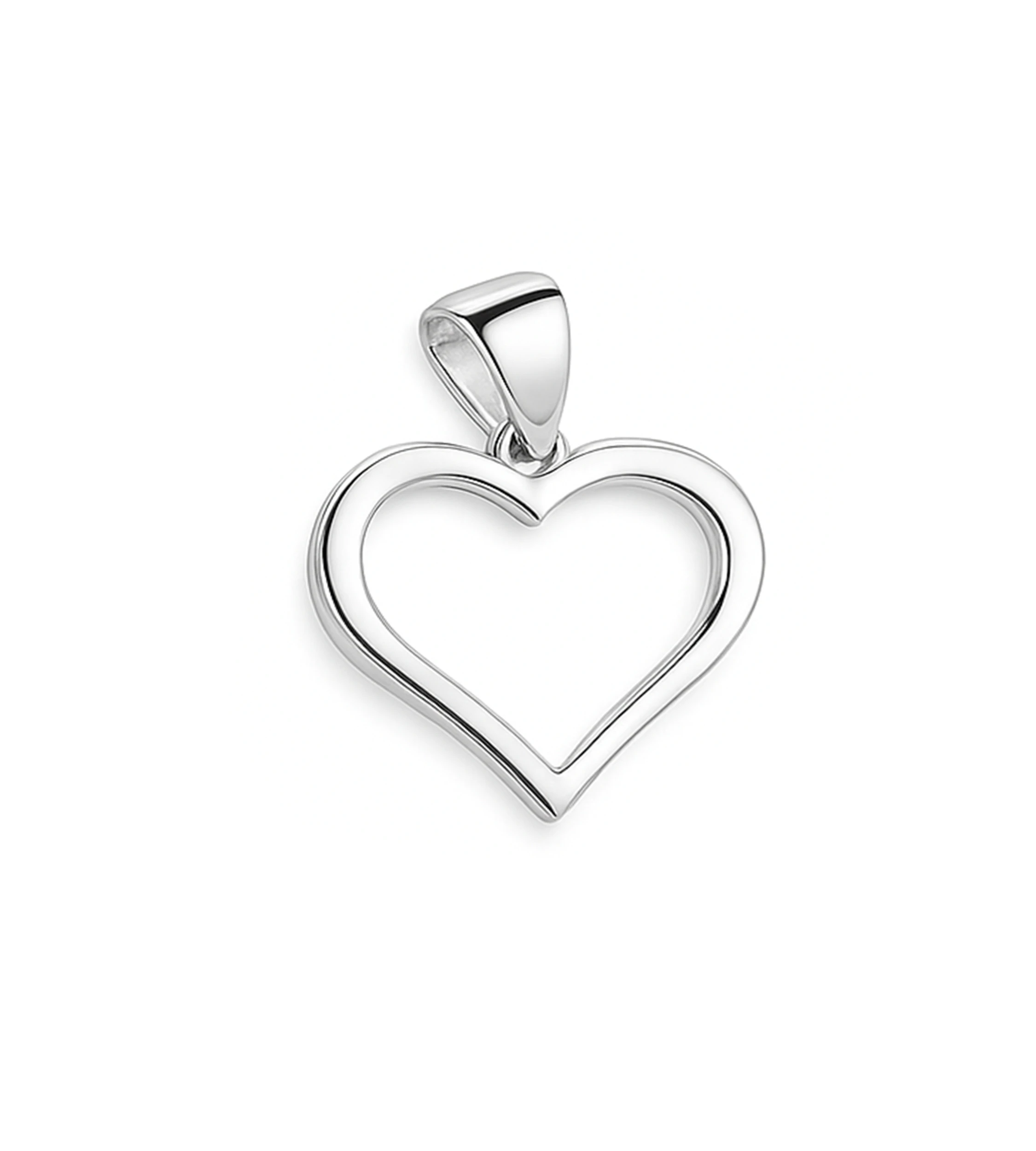 Subtelna srebrna zawieszka w kształcie serca, rodowana i minimalistyczna. Ponadczasowy symbol miłości, idealny na co dzień i jako prezent dla bliskiej osoby.