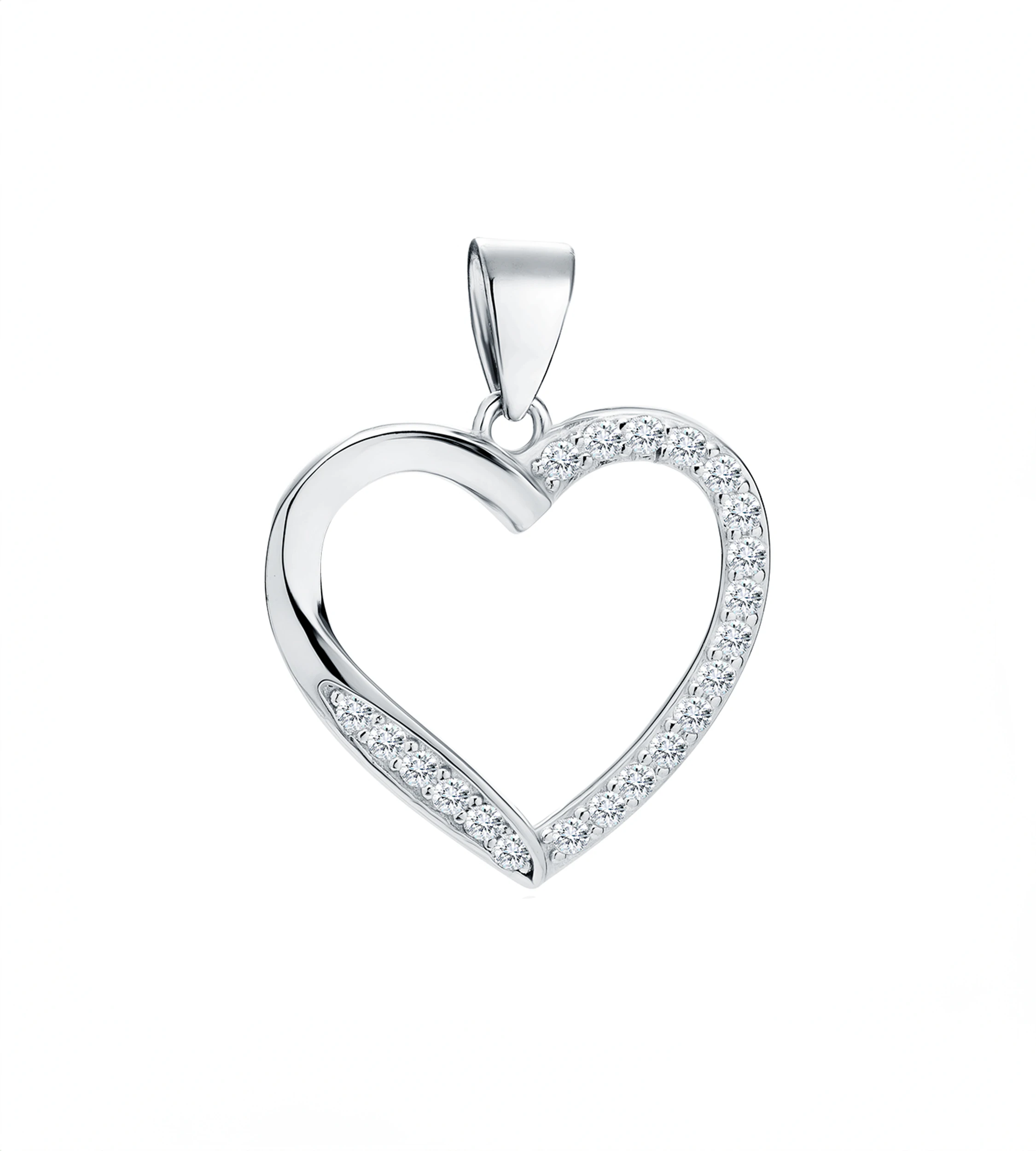 Elegancka srebrna zawieszka 925 w kształcie serca, wysadzana białymi cyrkoniami. Rodowana, uniwersalna i idealna na prezent dla bliskiej osoby.
