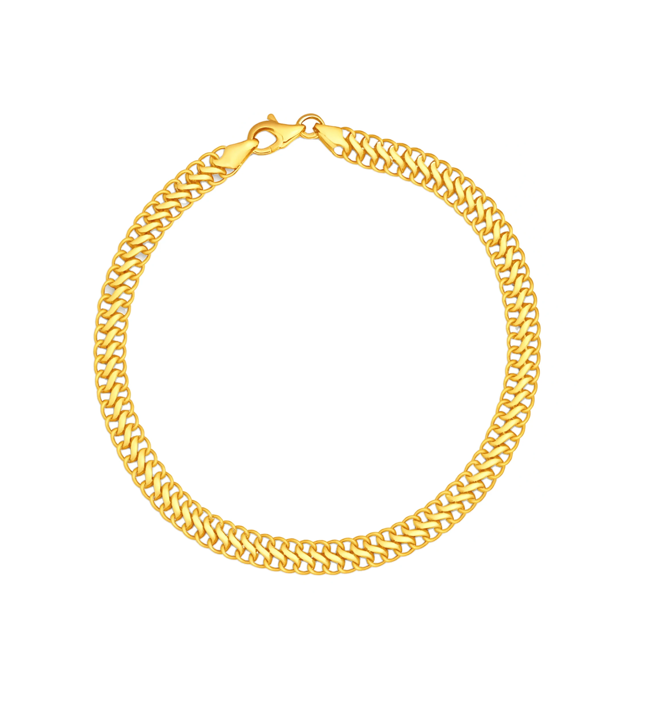 Złota bransoletka przeplatana wykonana ze złota próby 585 to doskonały przykład ponadczasowej elegancji zamkniętej w prostej, ale wyrazistej formie. Jej splot opiera się na płasko nachodzących na siebie ogniwach, które subtelnie odbijają światło i nadają biżuterii miękkiego, szlachetnego blasku. To bransoletka, która zachwyca finezją wykonania, a jednocześnie pozostaje niezwykle uniwersalna i łatwa do noszenia na co dzień.