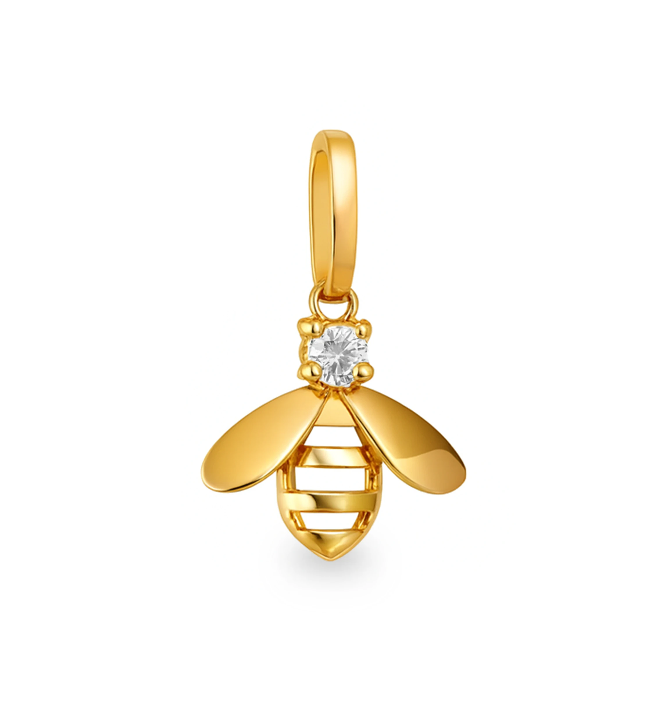 Złota zawieszka próby 585 w kształcie pszczółki urzeka wdziękiem i detalem. Jej skrzydełka zostały subtelnie wypolerowane, dzięki czemu delikatnie odbijają światło i dodają biżuterii lekkości. Brzuszek owada to ażurowy detal – cienkie nacięcia układają się w charakterystyczne, poziome pasy, tworząc ciekawą grę światła i cienia. Na główce pszczółki osadzona została niewielka biała cyrkonia, która dodaje zawieszce świetlistego, szlachetnego akcentu.