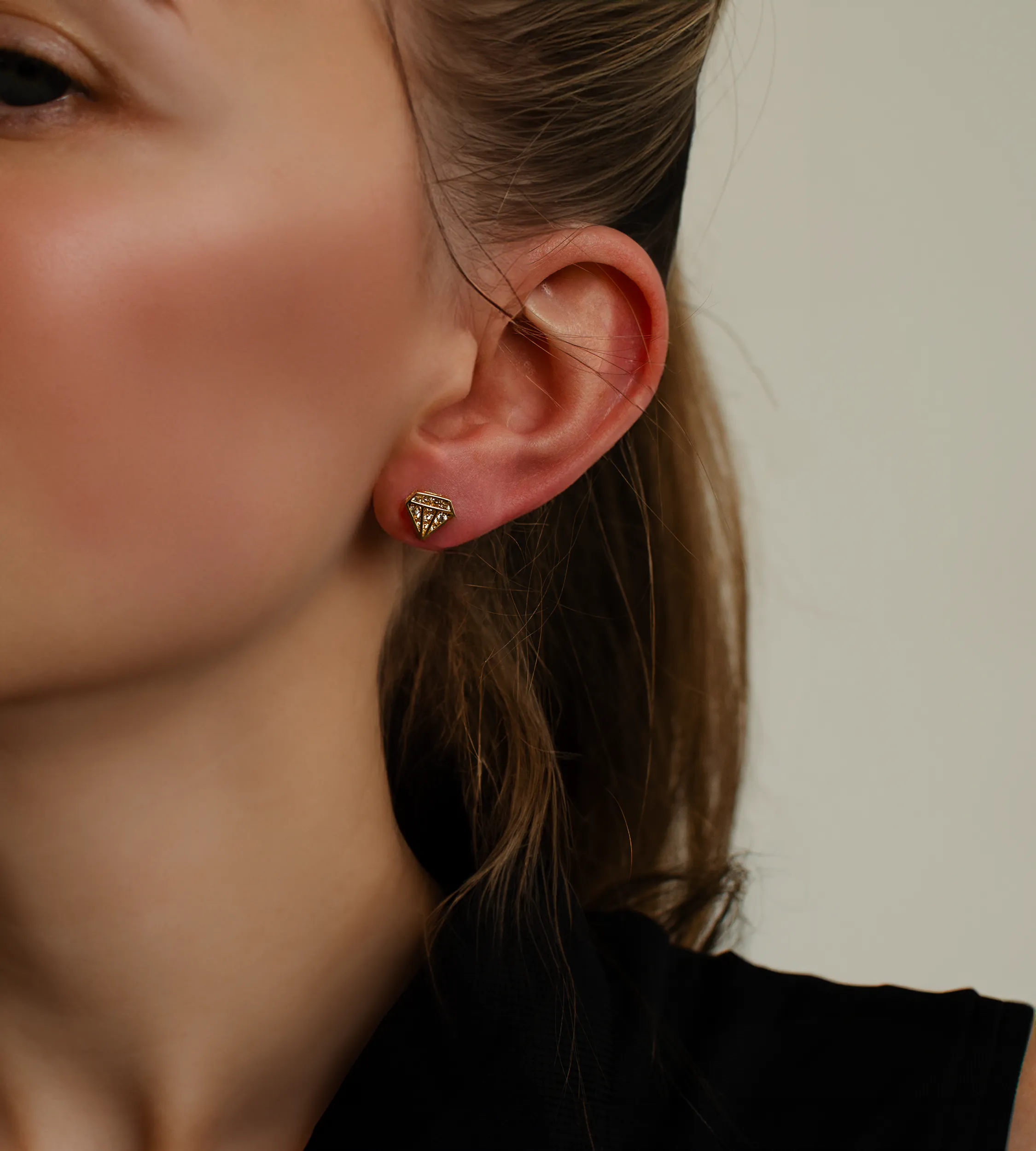 Te subtelne złote kolczyki próby 585 w kształcie diamentu to idealna propozycja dla kobiet ceniących prostotę i ponadczasowy styl. Zaprojektowane w duchu minimalizmu, zachwycają klasycznym wyglądem, który doskonale wpisuje się zarówno w codzienne, jak i eleganckie stylizacje. Dzięki zapięciu typu sztyft kolczyki są wygodne i bezpieczne, a ich niewielki rozmiar (7,6 mm długości i 8,1 mm szerokości) sprawia, że pięknie przylegają do ucha i nie przytłaczają ogólnego wyglądu.