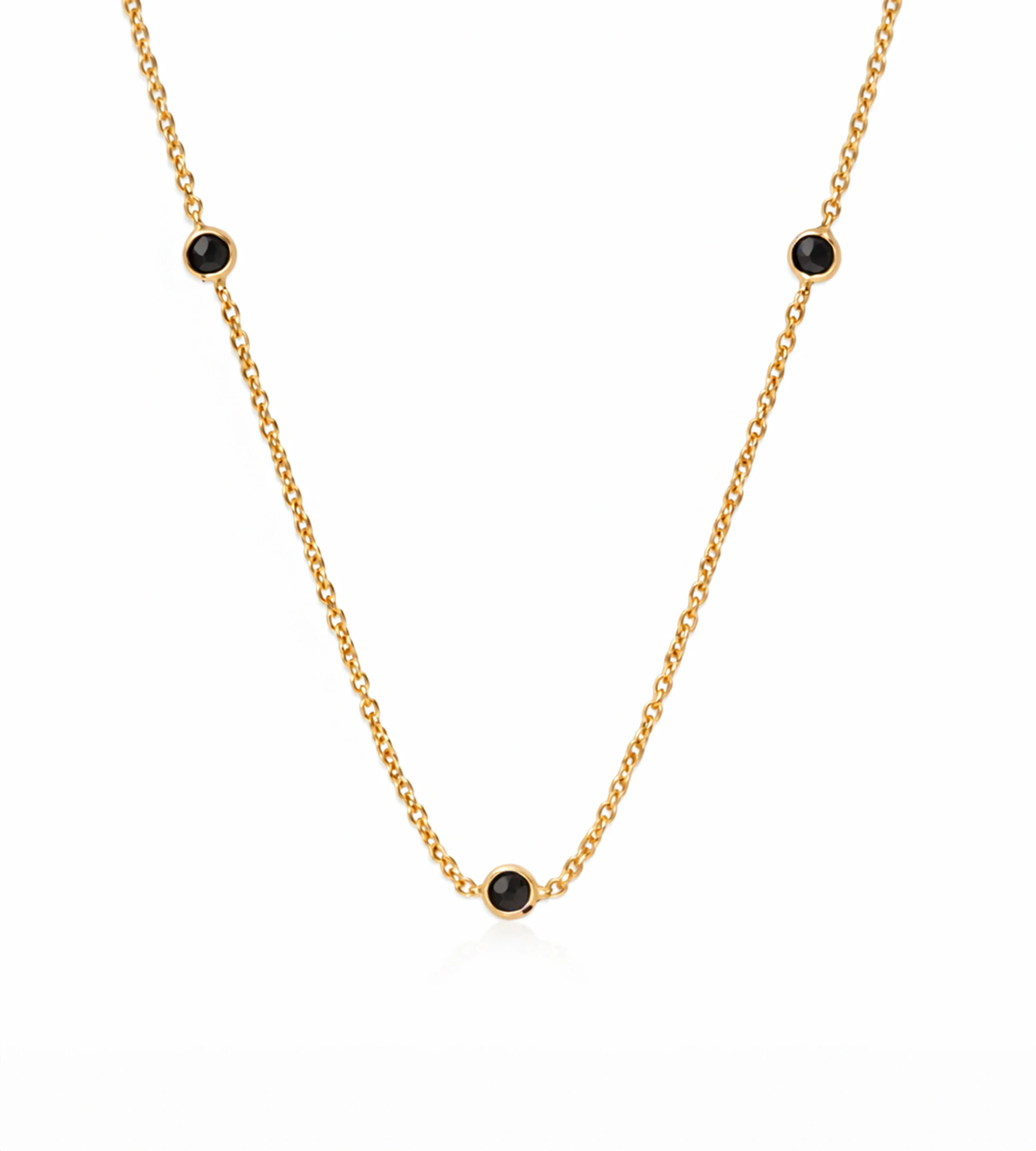 Złoty naszyjnik z czarnymi cyrkoniami – elegancki, uniwersalny dodatek, który podkreśli każdą stylizację. Idealny wybór na prezent lub do codziennych looków.