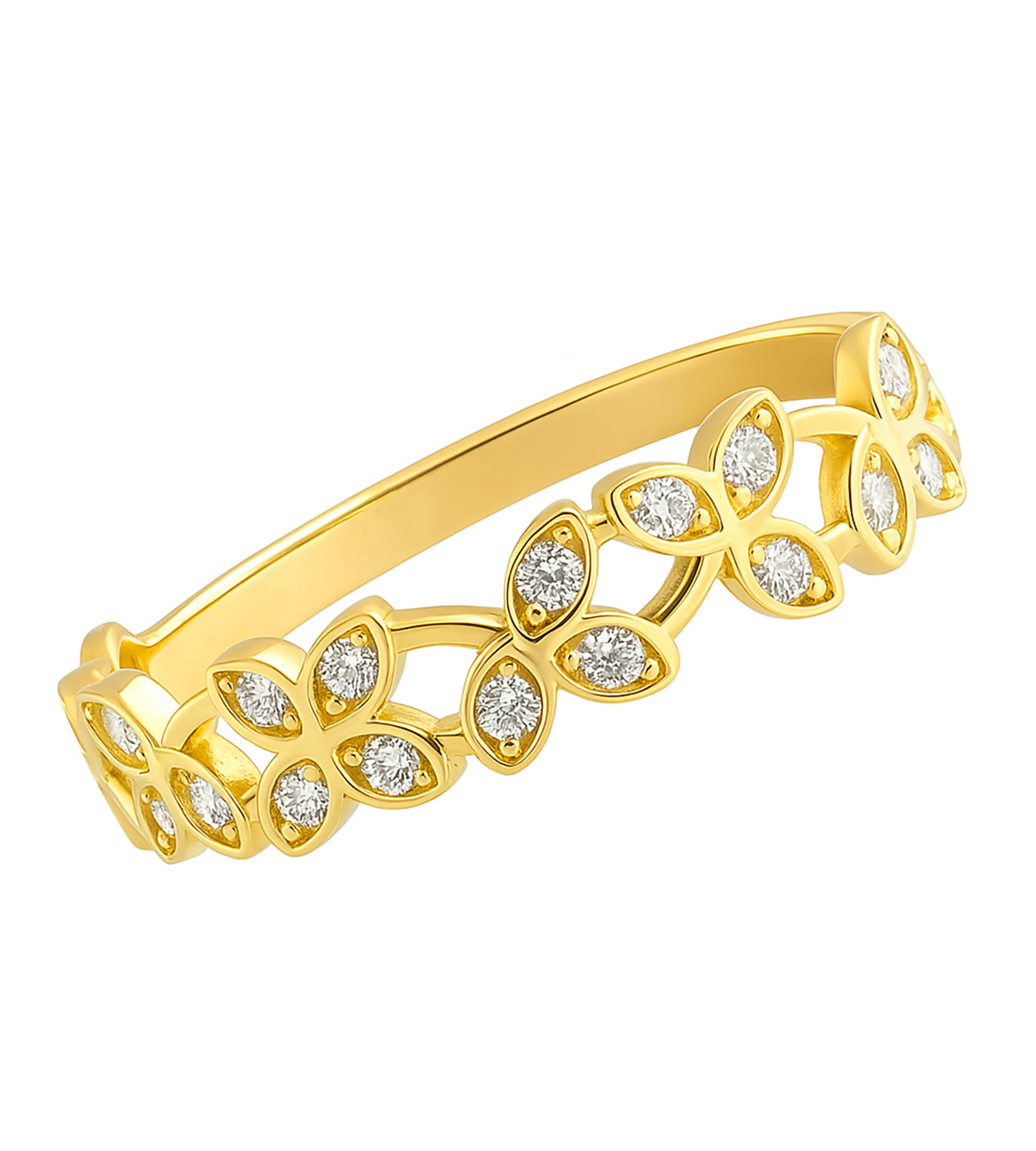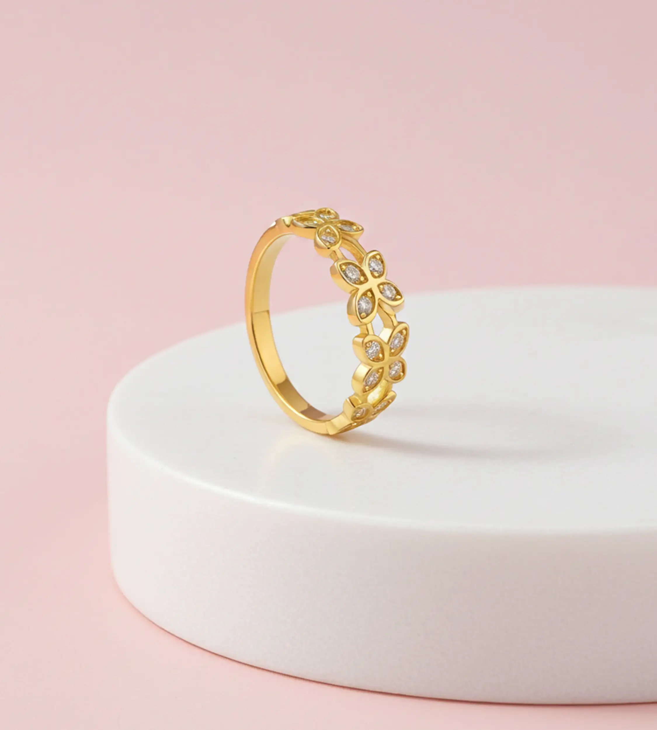 Złoty pierścionek z kwiatkami to połączenie klasyki, romantyzmu i elegancji – idealny dla każdej kobiety, która lubi delikatną, kobiecą biżuterię