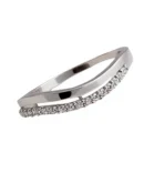 Złoty pierścionek próby 585. Na froncie widoczne są cyrkonie ułożone wzdłuż wąskiej obrączki z białego złota szlifowanego na połysk.Pierścionek układa się na kształt lekkiej fali. Szerokość pierścionka 3,5 mm.